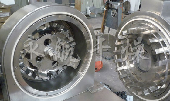 本机的工作原理是物料进入粉碎室,在高速旋转的活动齿盘与固定齿盘间受齿的冲击、剪切、磨擦及物料间的相互撞击的作用下被粉碎,经筛网筛选后即成为所需的粉料。